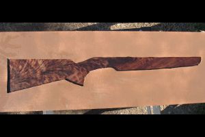 Feather1 $1500 *SOLD* Yep, now we're talking. This is the kind of wood I swoon over and I doubt there is any other airgunner that has the walnut disease as bad as I have it to pony up for a blank like this. Figure like this is called 'feather' and occurs at the junction of the first large branch. A giant $10,000 walnut tree may only yield one or two blanks like this, and most of them are not long enough for a rifle, so most of these are seen on shotguns. This is a special rare find.
